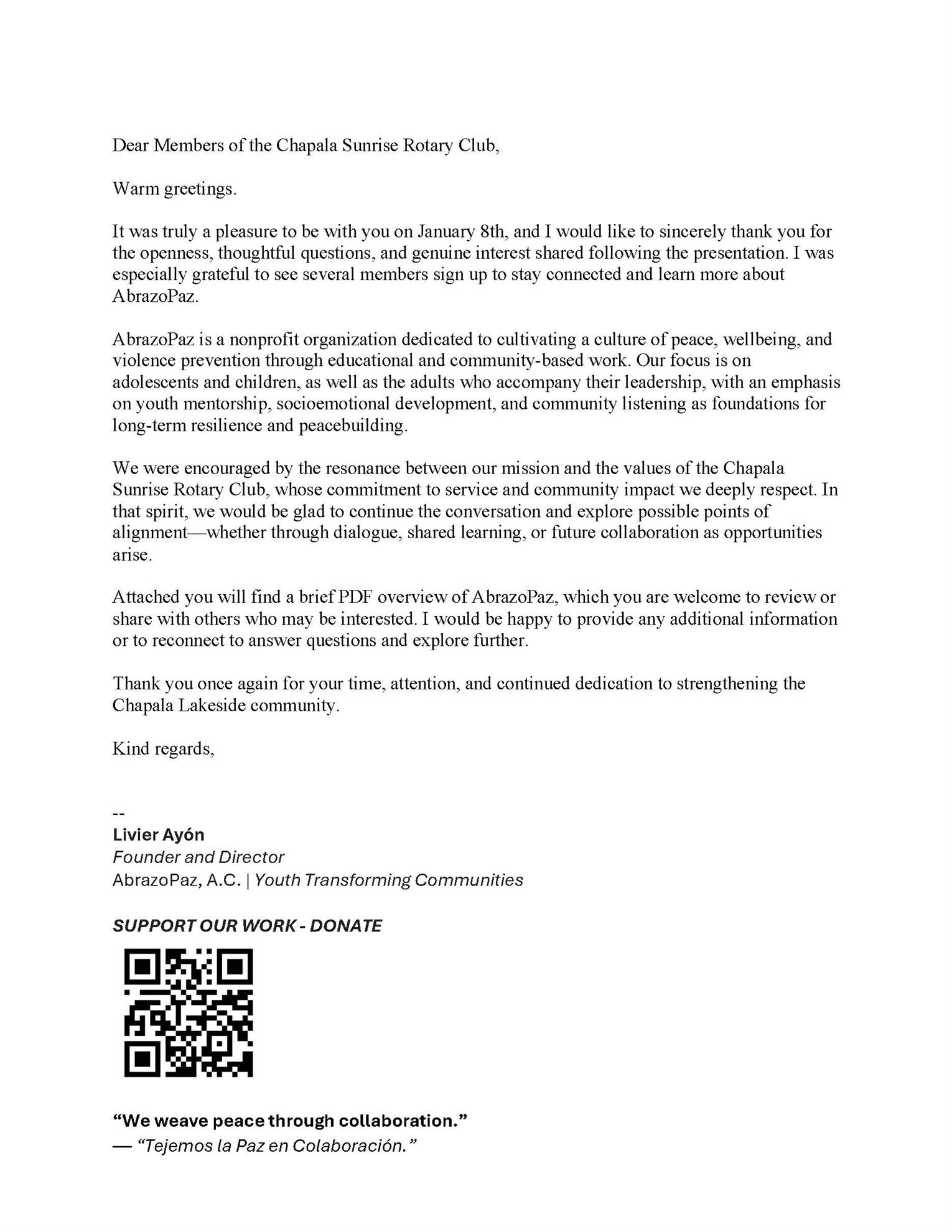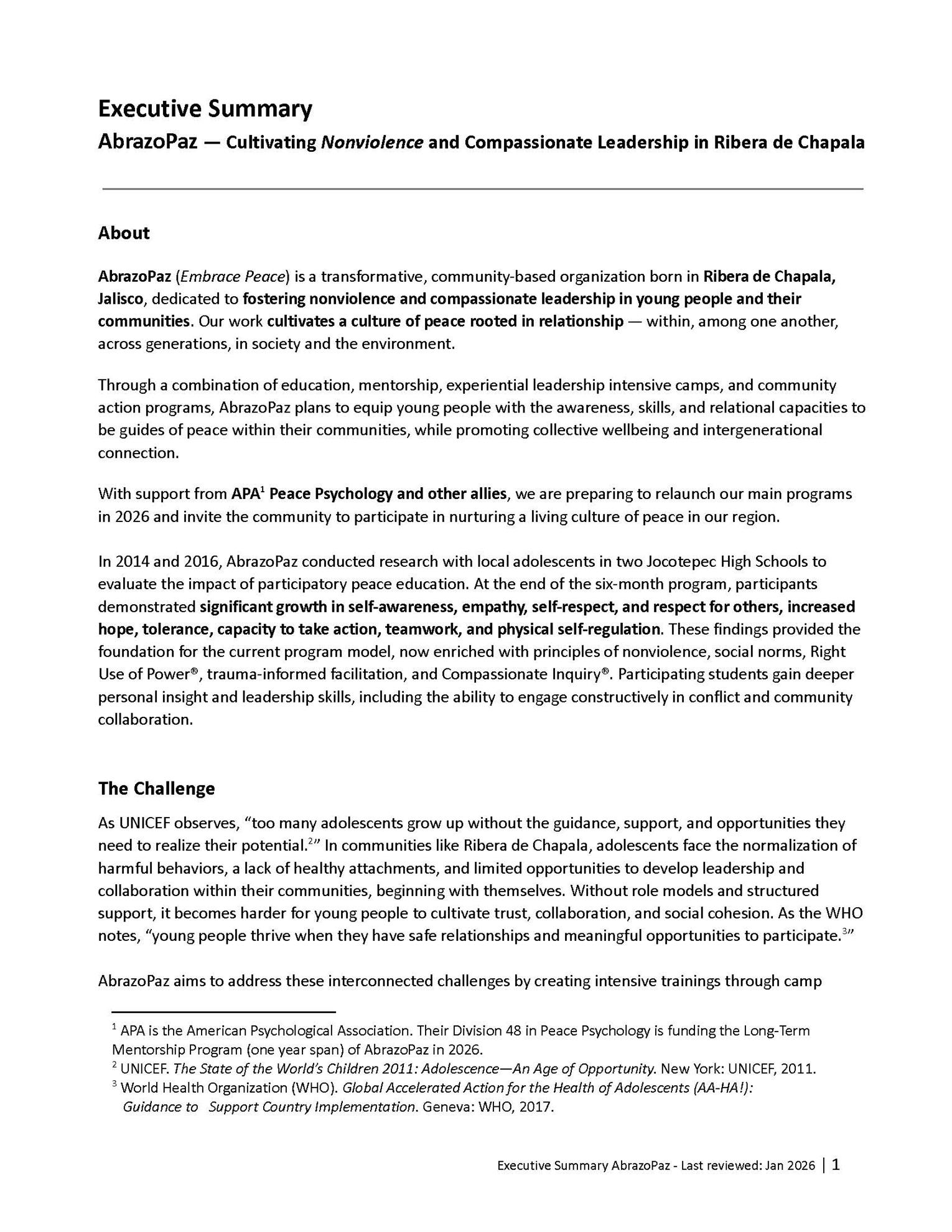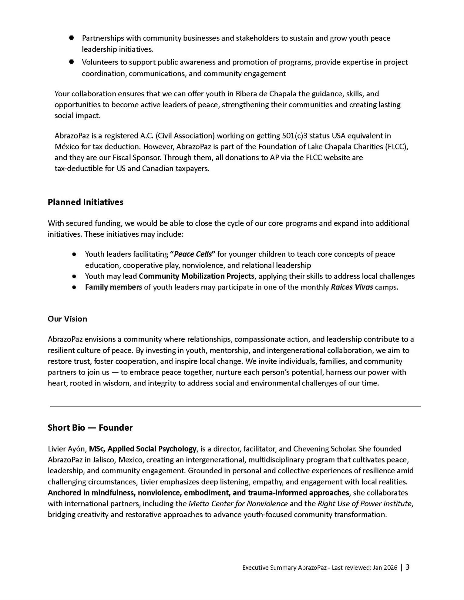 AbrazoPaz in Jalisco, Mexico, creating an intergenerational, multidisciplinary program that cultivates peace,