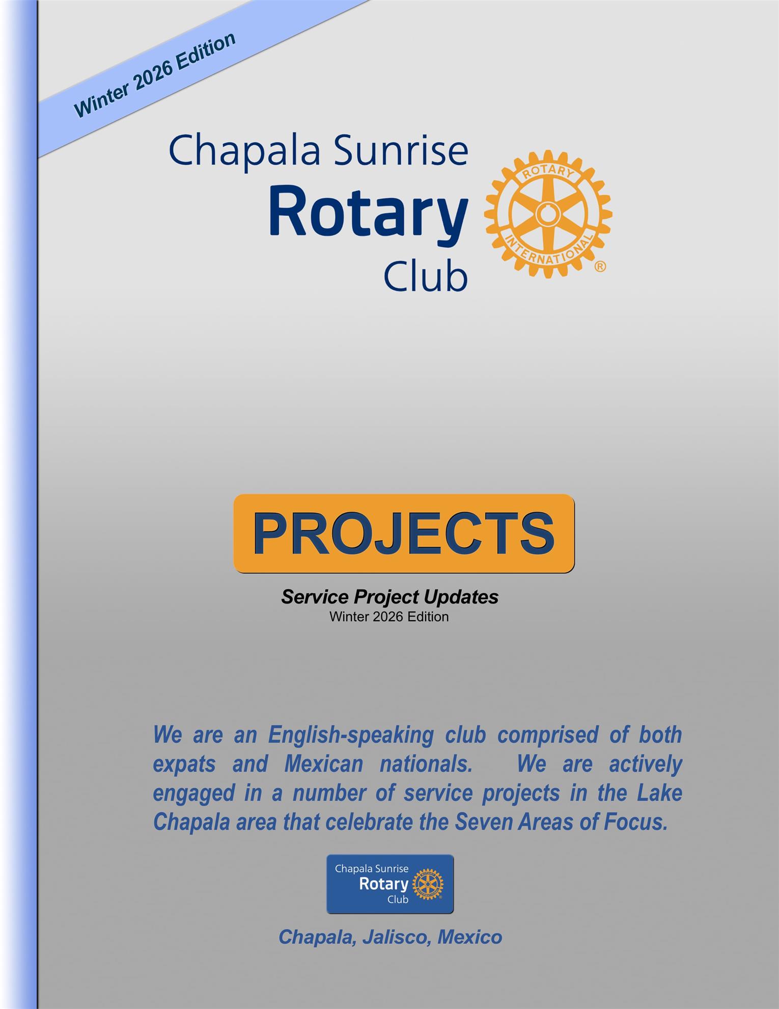 Enjoy our Project Booklet Winter 2026 Edition. This covers much of the spirit of our "Boots on the Ground" club talents and attitudes. We are the largest club in District 4140 and work hard to put Service above Self.