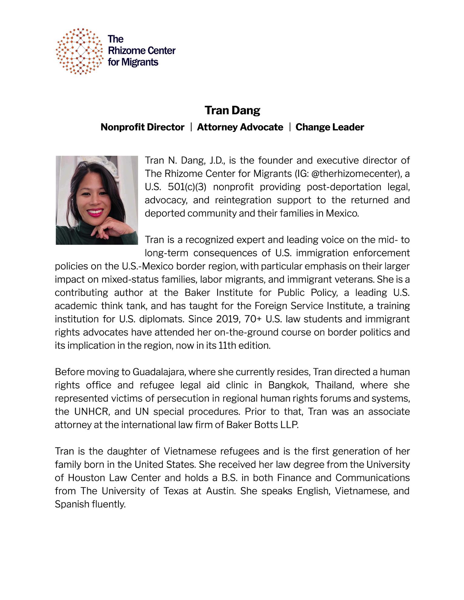 Photo 1: President Nicci Beninger with Guest Speaker Tran Dang.